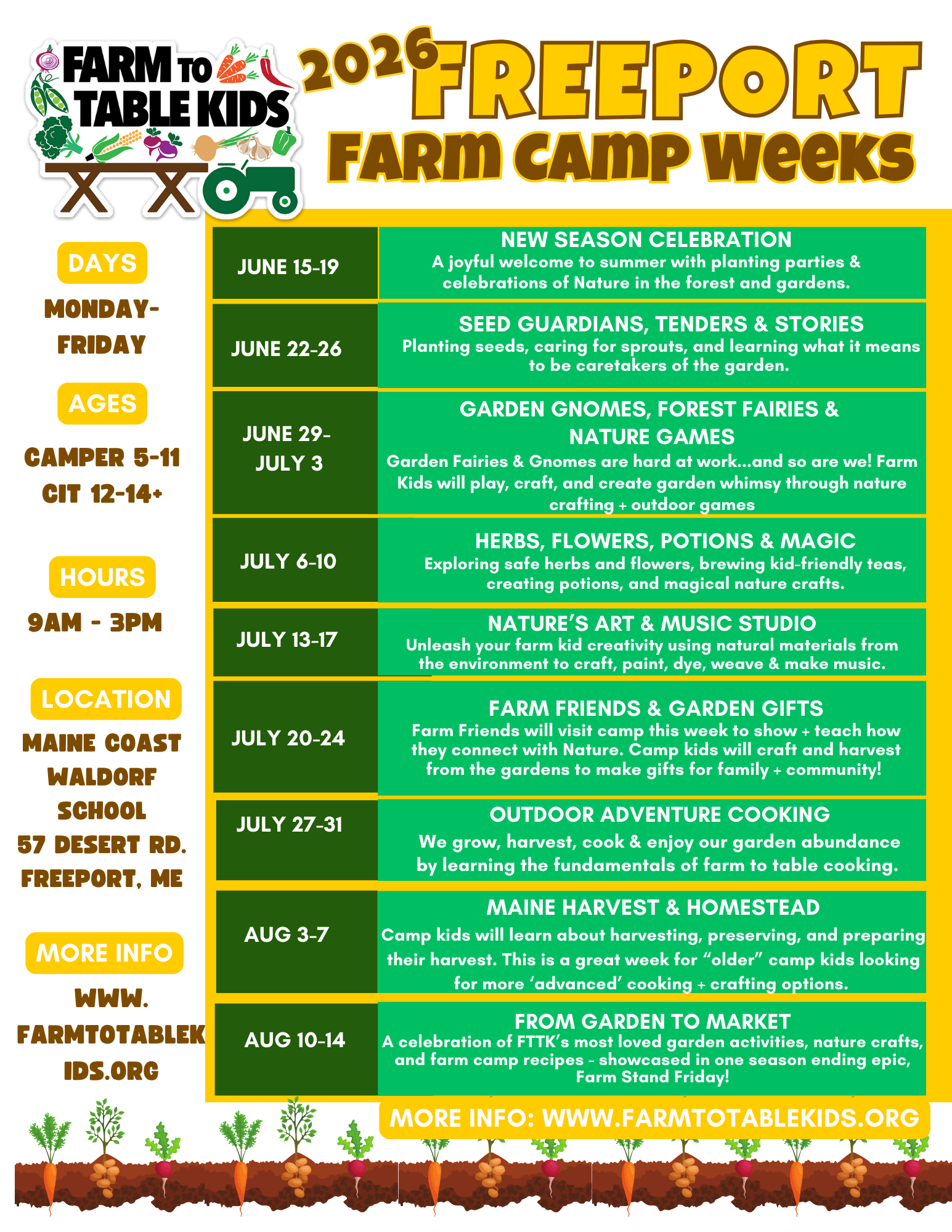 We are THRILLED to announce our new location and partnership with Maine Coast Waldorf School in Freeport. This partnership with MCWS will help us triple our farm to table kid impact in the community. This summer is going to be Mother Nature Magic and I am so here for it!